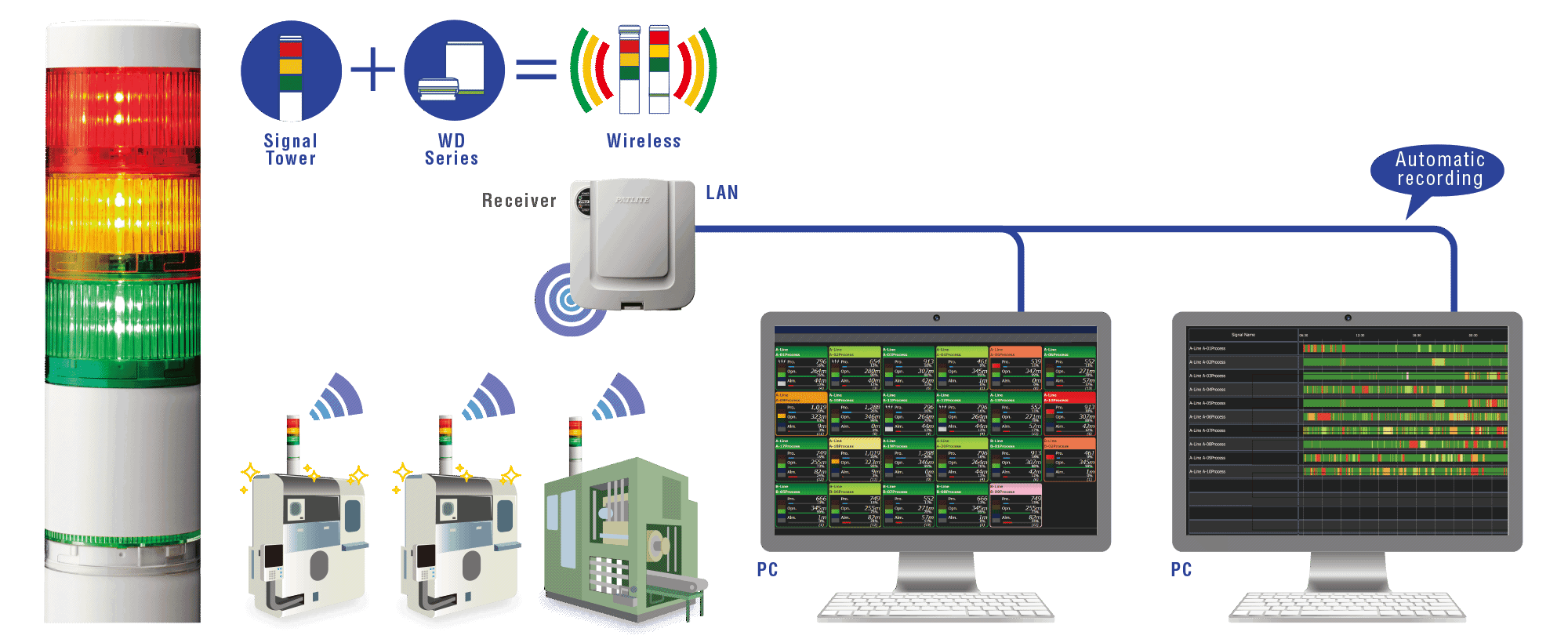 Dengan Patlite anda tidak perlu lagi mengeluarkan biaya besar untuk mengganti mesin ke model baru untuk mendeteksi status kerja mesin secara otomatis.